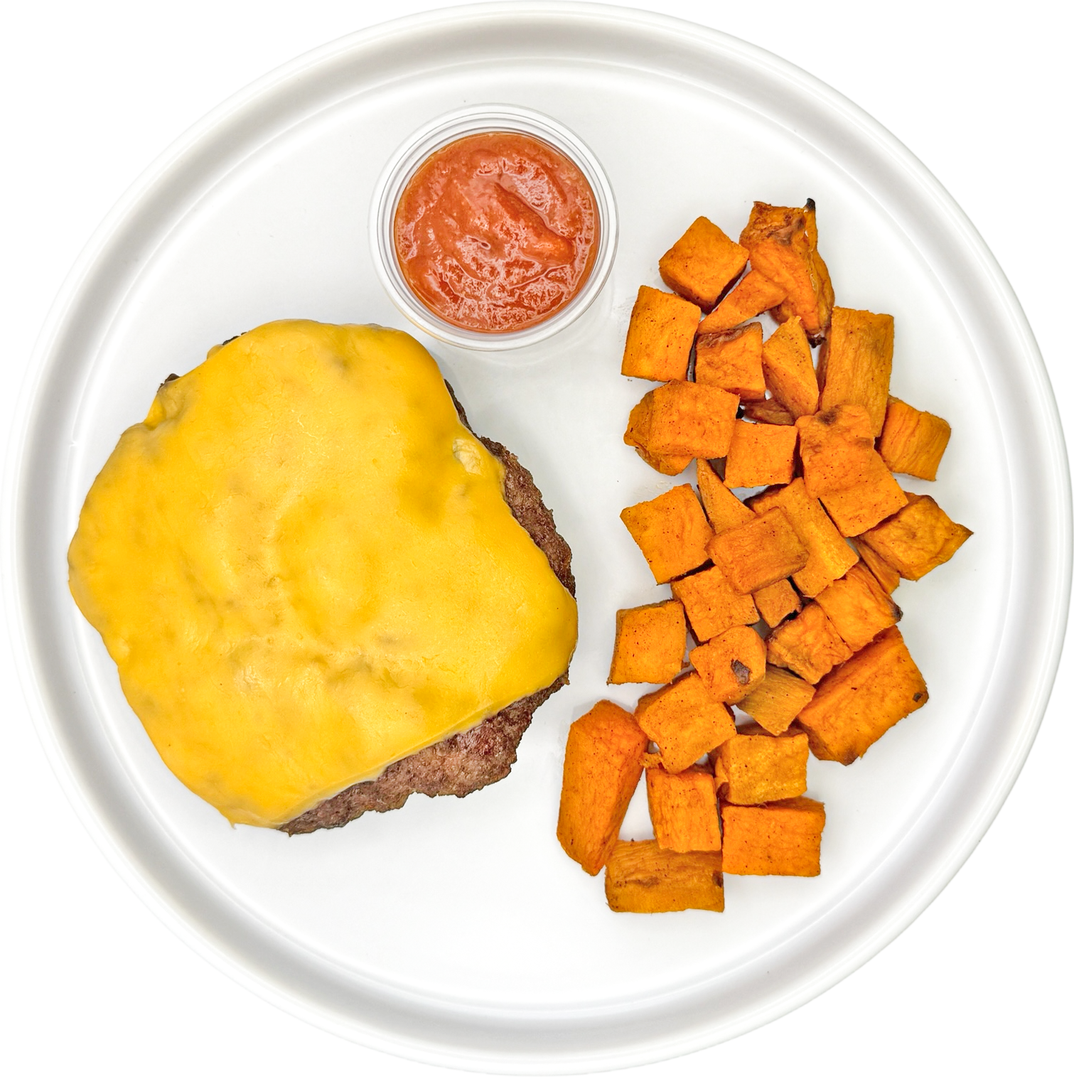 Beef Burger, Sweet Potato, Maple BBQ Sauce